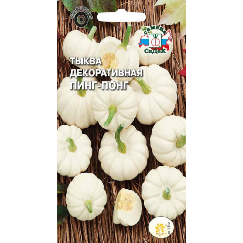 Однолетний быстрорастущий сорт декоративной тыквы с уникальными миниатюрными плодами. Растение образует изящные стебли-лианы длиной до 1,5 м с крупными мягкоопушенными листьями и яркими жёлтыми воронковидными цветками. Главная особенность сорта - белые мини-тыквы размером с теннисный мяч, которые станут прекрасным украшением домашнего интерьера и флористических композиций. Растение тепло- и светолюбивое, предпочитает плодородные увлажнённые почвы, быстро разрастается и образует густую декоративную листву. Идеально подходит для вертикального озеленения, создания живых изгородей и декорирования неприглядных уголков сада. Сорт отличается неприхотливостью в уходе и высокой декоративностью на протяжении всего сезона.