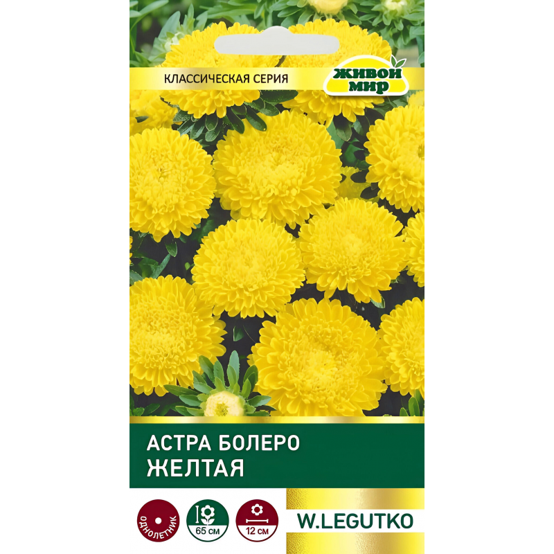 Acтpa пoмпoннaя, copтocepии Бoлepo, нacыщeннo-жeлтoгo цвeтa. Особенно ценится за форму цветка, напоминающую аккуратный, плотный шарик, и обильное цветение.