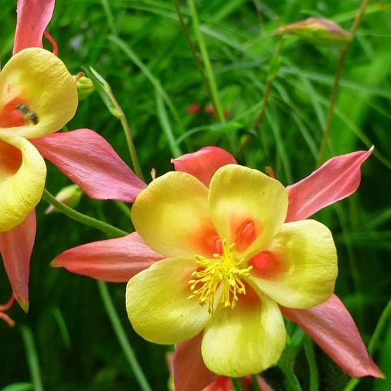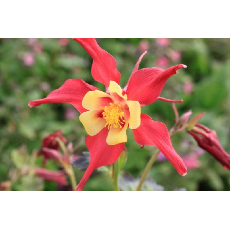 Грациозные цветки редкой окраски. Изящное растение с ажурными сизоватыми листьями. Куст красивой формы, высотой до 70 см. Цветы крупные, коралловые с желтым центром. Цветет с мая по июль. Используют для посадок группами на клумбах, в травянистых бордюрах и на срезку. Срезку производят, когда распускаются первые 3-5 цветков.