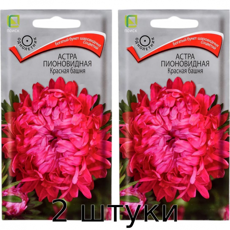 - Сорт семян:Астра Башня Красная пионовидная