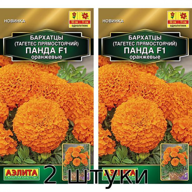 Бархатцы Панда F1 оранжевые прямостоячие - это изумительная серия крупноцветковых бархатцев иностранной селекции, которая поражает своими декоративными качествами. Размер махровых соцветий достигает впечатляющих 8-11 см, что делает эти цветы настоящим украшением любого сада. Растения формируют компактные кустики высотой около 40-50 см, состоящие из множества крепких боковых побегов. Цветение начинается уже в конце июня и продолжается непрерывно вплоть до осени, обеспечивая длительное наслаждение яркими красками. К разгару лета шаровидные густые кустики полностью покрываются яркими пышными цветками, создавая эффектные цветочные композиции. Особенностью этих бархатцев является плотное сложение лепестков в соцветиях - они расположены так тесно друг к другу, что даже под воздействием осадков не теряют своей красоты и формы. Эти гибриды по праву считаются одними из лучших по совокупности декоративных свойств среди всех бархатцев.