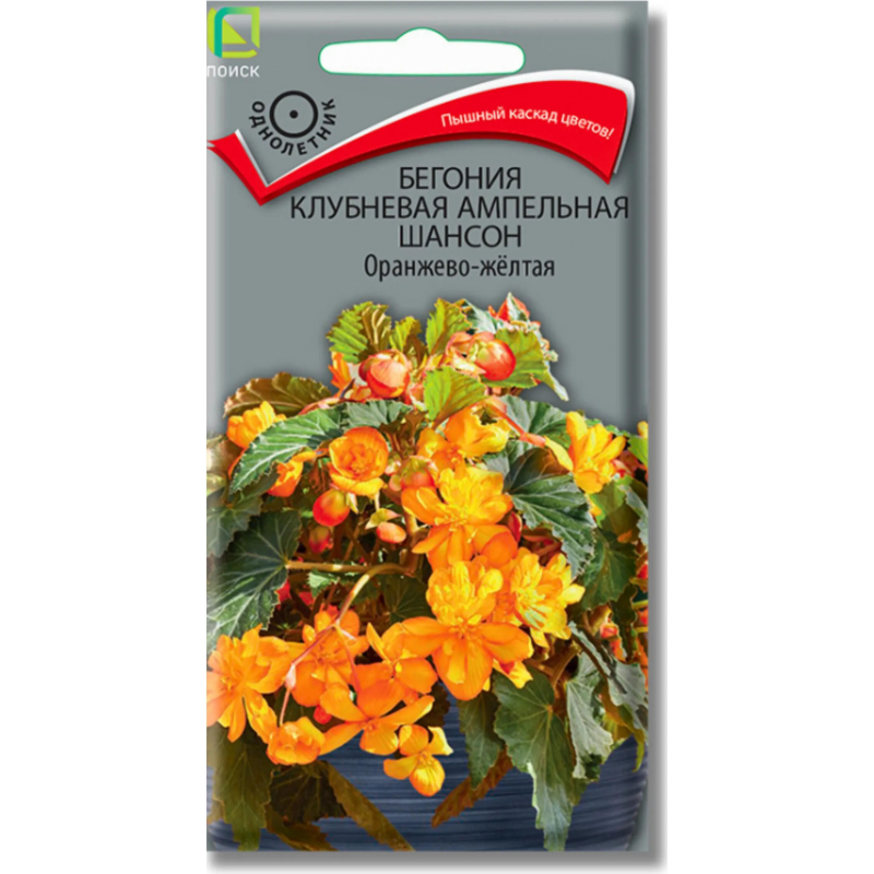 Бегония клубневая ампельная "Шансон" оранжево-желтая - это великолепное клубневое растение с обильным и продолжительным цветением. Формирует 5-8 свисающих побегов длиной 30-45 см, идеально подходящих для подвесных кашпо и цветочных ящиков. Цветки камелиевидной формы, махровые или полумахровые, диаметром 6-8 см, с ярко-желтой окраской и широкой красно-оранжевой каймой по краю лепестков. Длинные соцветия расположены в пазухе каждого листа, создавая эффектную цветочную композицию. Цветение обильное с июля по сентябрь, украшая пространство насыщенными красками на протяжении всего лета. Растение является однолетником, но клубни можно сохранять на зиму для использования в следующем сезоне. Прекрасно подходит для озеленения балконов, террас, веранд и создания вертикальных цветочных композиций.