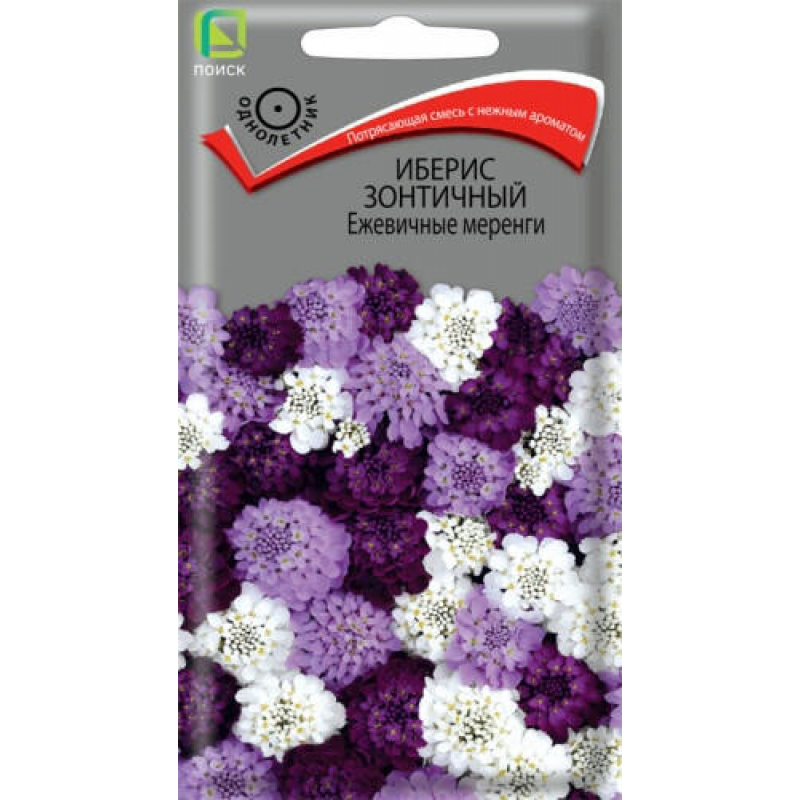 Иберис зонтичный Ежевичные меренги - это потрясающая смесь с нежным ароматом, которая станет украшением вашего сада. Это ветвистое растение раскидистой формы достигает высоты 30 см и образует пышные кустики. Душистые цветки собраны в плотные соцветия диаметром до 5 см, представленные в белой, фиолетовой и пурпурной окраске, создавая эффектную разноцветную композицию. Цветение начинается в июне и продолжается в течение двух месяцев, наполняя сад тонким ароматом. Иберис идеально подходит для создания сборных цветников, рабаток и бордюров, где его нежные соцветия создают воздушные акценты. Растение неприхотливое и хорошо адаптируется к различным условиям выращивания. Семена соответствуют требованиям международных стандартов и ГОСТу РФ 12260-81, что гарантирует их качество и всхожесть.