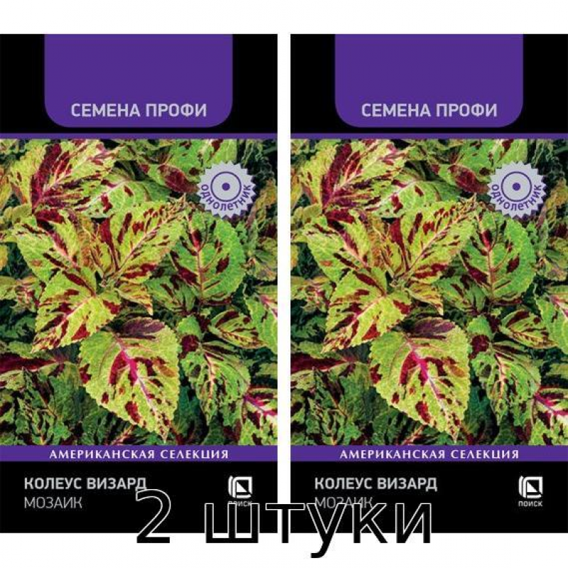 Колеус Визард Мозаик - компактное декоративное растение с необыкновенной окраской листьев. Растения выравненные, высотой 20-35 см, с прекрасным базальным ветвлением. Листья очень декоративные, опушенные с зазубренным краем, окрашены в зелёный цвет с эффектными бордовыми пятнами и штрихами, создающими мозаичный узор. Цветение позднее, что позволяет наслаждаться красотой листвы в течение всего сезона. Идеально подходит для ландшафтного озеленения, создания ярких клумб, оформления кашпо и контейнеров, а также для комнатного выращивания. Растение отличается быстрым ростом и неприхотливостью в уходе. Семена фасуются в цветной пакет по 10 штук.