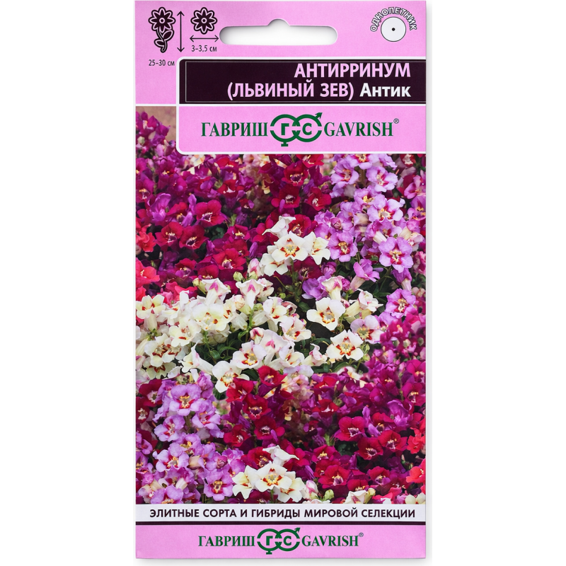 нтирринум частый гость пышных цветников, заслуживший любовь нарядными цветами необычной формы с богатой и яркой палитрой окрасок. Новая необыкновенная серия Антик с удивительными открытыми азалиевидными цветками с волнообразным краем, что создает эффект махровости, и приятным ароматом станет достойным украшением вашего сада. Интенсивно ветвящейся кустик, достигающий в высоту 25-30 см, буквально усыпан крупными цветками, собранными в кистевидные соцветия разнообразных оттенков: от легких пастельных до насыщенных темных. Цветение продолжительное и обильное с июня до заморозков. Будучи неприхотливым растением, львиный зев нуждается лишь в стандартных процедурах по уходу за растениями: правильный полив, рыхление грунта, подкормка и удаление сорняков. Выращивают рассадным способом. Для получения дружных всходов семена необходимо стратифицировать при температуре +10оС. Посев проводят с начала марта до середины апреля, поверхностно, не заделывая, в ящики с субстратом и ставят на свет. Всходы появляются через 8-12 дней. Рассаду высаживают во второй половине мая с расстоянием между растениями 20 см. Можно высевать семена в открытый грунт под зиму, в этом случае цветение начинается в августе. Крошечные изящные «гладиолусы» идеально подойдут для контейнеров и горшков, а также для клумб и рабаток.