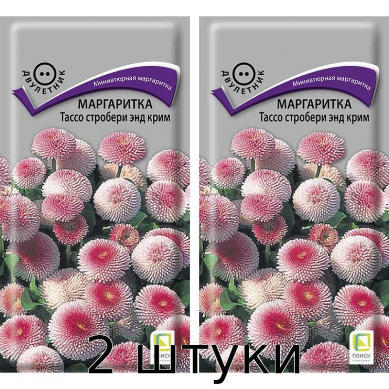 - Сорт семян:Маргаритка Тассо стробери энд крим