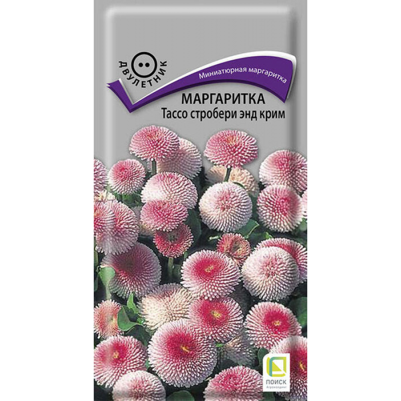 - Сорт семян:Маргаритка Тассо стробери энд крим
