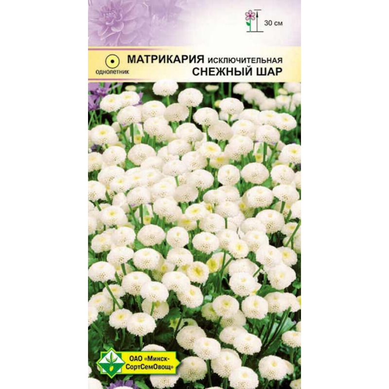 Матрикария исключительная Снежный шар - это обильно и продолжительно цветущее однолетнее растение высотой до 30 см. Компактный куст украшен множеством махровых белых душистых соцветий, похожих на нежные подушечки, диаметром до 2,5 см. Идеально подходит для создания живописных групповых посадок, оформления клумб, рабаток, бордюров и выращивания в горшках. Растение предпочитает солнечные места, но к почве нетребовательно, что делает его простым в уходе. Матрикария переносит небольшие заморозки и способна давать самосев, обеспечивая цветение на следующий год. Семена соответствуют высоким стандартам качества ГОСТ 12260-81 и Постановлению МСХП РБ от 29.10.2015г. №37. Период цветения с начала июля до середины сентября подарит вашему саду продолжительную красоту и нежный аромат.