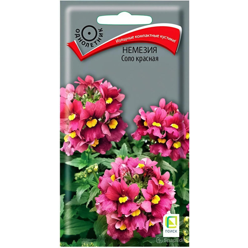 Немезия Соло красная - изящное клумбовое растение с компактными кустиками высотой 20-30 см, усыпанными множеством миниатюрных ярко-красных цветов. Это сильноветвистое однолетнее растение отличается обильным и продолжительным цветением с июня по сентябрь, создавая эффектные цветочные композиции в саду. Идеально подходит для оформления рабаток, бордюров, балконных ящиков и контейнеров. Растение образует плотные, аккуратные кустики, которые сохраняют декоративность на протяжении всего сезона. Немезия Соло красная привлекает внимание насыщенным красным цветом и изящной формой цветков, создавая яркие акценты в ландшафтном дизайне. Растение неприхотливо в уходе и хорошо адаптируется к различным условиям выращивания.