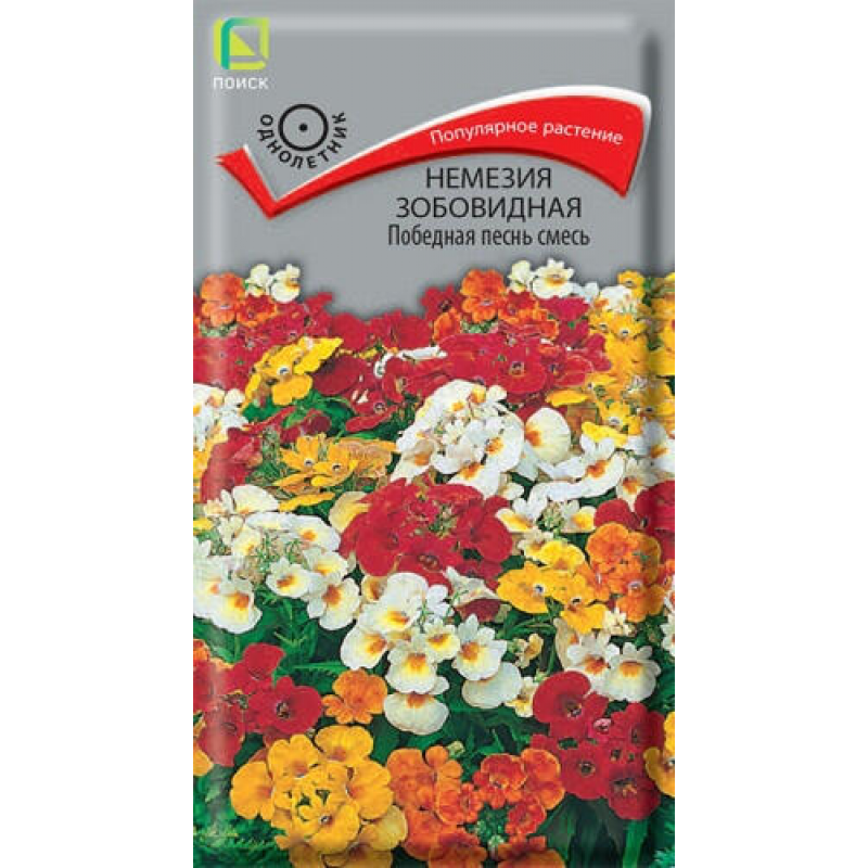 Немезия зобовидная Победная песнь Смесь - это изящное клумбовое растение, которое станет настоящим украшением вашего сада или балкона. Компактные сильноветвистые кустики высотой 20-30 см образуют пышные подушки, усыпанные множеством миниатюрных цветов диаметром до 2,5 см. Цветки необычной формы поражают разнообразием окрасок в этой смеси. Растение отличается обильным и продолжительным цветением с июня по сентябрь, создавая яркие акценты в садовых композициях. Немезия идеально подходит для оформления рабаток, бордюров, балконных ящиков и контейнеров. Ее изящные кустики смотрятся особенно эффектно в групповых посадках, создавая живописные цветочные ковры. Растение предпочитает солнечные места и умеренно плодородные влажные почвы, что делает его неприхотливым в уходе. Для продления периода цветения рекомендуется омолаживающая стрижка во второй половине лета, которая стимулирует отрастание новых побегов и повторное цветение.