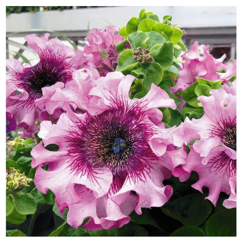 Однолетнее продолжительно цветущее растение высотой около 60 см. Цветки крупные, с волнистыми бахромчатыми краями, нежно-розовой окраски с темно окрашенным рисунком в середине, в диаметре 10-12 см. Идеальна для посадок в балконных ящиках, горшках и кашпо, можно использовать в цветниках. При посеве семена не присыпают, а слегка вдавливают в почву. Для показа всего своего великолепия этим петуниям необходимо солнце, регулярные подкормки и достаточное увлажнение.Качество семян соответствует ГОСТу 12260-81 и Постановлению МСХП РБ от 29.10.2015г. №37.