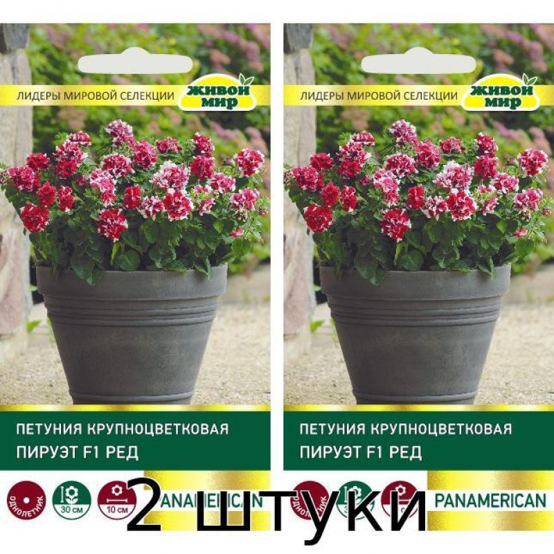 Петуния Пируэт F1 Ред - великолепная махровая разновидность с крупными эффектными цветками. Растения формируют раскидистые, хорошо разветвленные кусты высотой 30-35 см с крепкими стеблями. Цветки насыщенного красного цвета с широкой контрастной белой каймой по краю лепестков. Соцветия густомахровые, с бахромчатыми лепестками, достигают впечатляющего диаметра до 10 см. Цветение отличается необыкновенной обильностью и продолжительностью - с начала июня и до первых осенних заморозков. Эта гибридная петуния демонстрирует отличную устойчивость к неблагоприятным погодным условиям, сохраняя декоративность даже в дождливую погоду. Идеально подходит для создания ярких акцентов в садовых композициях, оформления балконов, террас и веранд. Семена произведены известной американской компанией PanAmerican Seed, гарантирующей высокое качество и соответствие сортовым характеристикам.