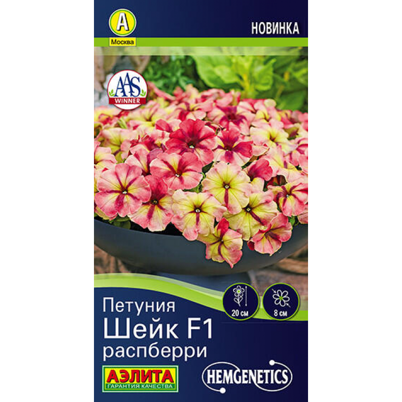 Петуния Шейк F1 Распберри - уникальный гибрид голландской селекции от компании Hem Genetics, официально представленный в России ООО «Агрофирма АЭЛИТА». Этот многоцветковый сорт отличается генетической карликовостью кустиков высотой 15-20 см и шириной 20-25 см, что делает его идеальным для компактных посадок. Крупные цветки диаметром 7-8 см поражают фантастической многогранной окраской с удивительными переливами желтых и карминово-красных оттенков. Каждый кустик представляет собой неповторимое чудо природы с уникальным сочетанием цветов. Раннее, равномерное и длительное цветение обеспечивает исключительную декоративность до конца теплого сезона. Сорт отмечен международной наградой за свои выдающиеся качества. Петуния Шейк F1 Распберри прекрасно подходит для выращивания в вазонах, контейнерах, балконных ящиках и создания эффектных ковровых посадок в саду.