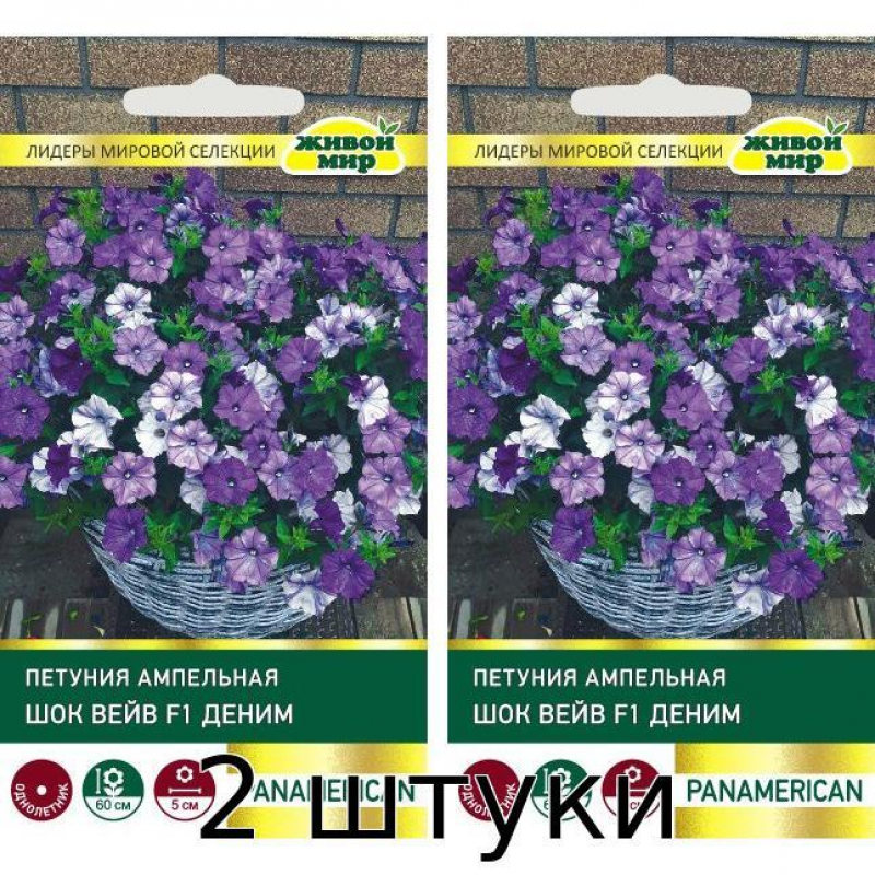 Петуния Шок Вейв F1 Деним ампельная от PanAmerican Seed - это самая раннецветущая петуния из серии Вейв, которая порадует вас обильным цветением в течение всего сезона. Растения быстро развиваются, отлично ветвятся и образуют пышный кустик высотой 20-25 см и шириной до 80 см. Длина побегов достигает 60 см, что делает эту петунию идеальной для ампельного выращивания. Цветки диаметром около 5 см имеют уникальную окраску: в начале цветения они темно-синие, а по мере распускания постепенно светлеют до нежного голубого оттенка. Цветение суперобильное и продолжительное - растения не оголяются, не требуют формирования и сохраняют плотность куста на протяжении всего сезона. Петуния Шок Вейв F1 Деним устойчива к дождю, что позволяет сохранять декоративность даже в неблагоприятных погодных условиях. Этот сорт прекрасно подходит для подвесных корзин и балконных ящиков, создавая эффектные каскады цветов, а также будет красиво смотреться на клумбах и в бордюрах. Семена произведены компанией PanAmerican Seed (США) и импортированы в РБ компанией "Живой мир". В упаковке 5 семян массой 6 г.