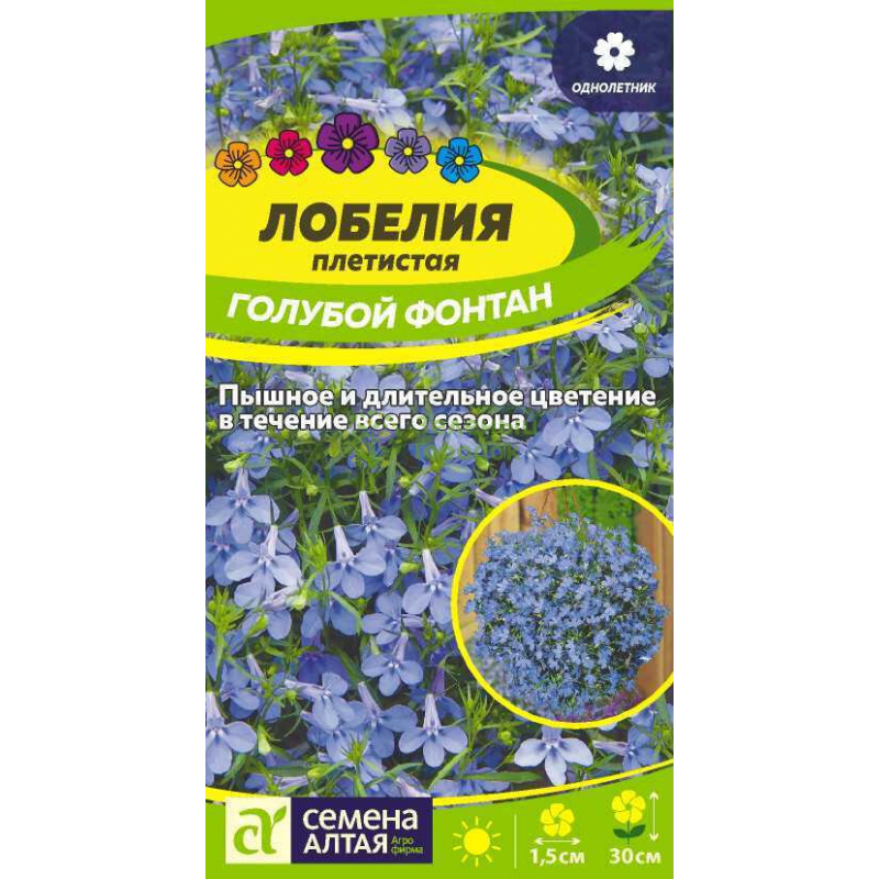 Лобелия плетистая Голубой Фонтан - очаровательное ампельное растение для подвесных корзин и контейнеров, выращиваемое в однолетней культуре. Растение образует распростёртые или свисающие побеги длиной до 30 см, которые обильно усыпаны мелкими голубыми цветками диаметром 1,5 см причудливой формы. Цветки расположены в пазухах листочков, создавая эффект непрерывного цветения. Идеально подходит для вертикального озеленения балконов, террас и садовых участков. Семена упакованы в металлизированный пакет, который надёжно защищает их от проникновения влаги и сохраняет всхожесть до конца 2028 года. Этот сорт лобелии отличается обильным и продолжительным цветением, создавая настоящий голубой водопад из цветов. Растение неприхотливо в уходе и прекрасно сочетается с другими однолетниками в композициях.