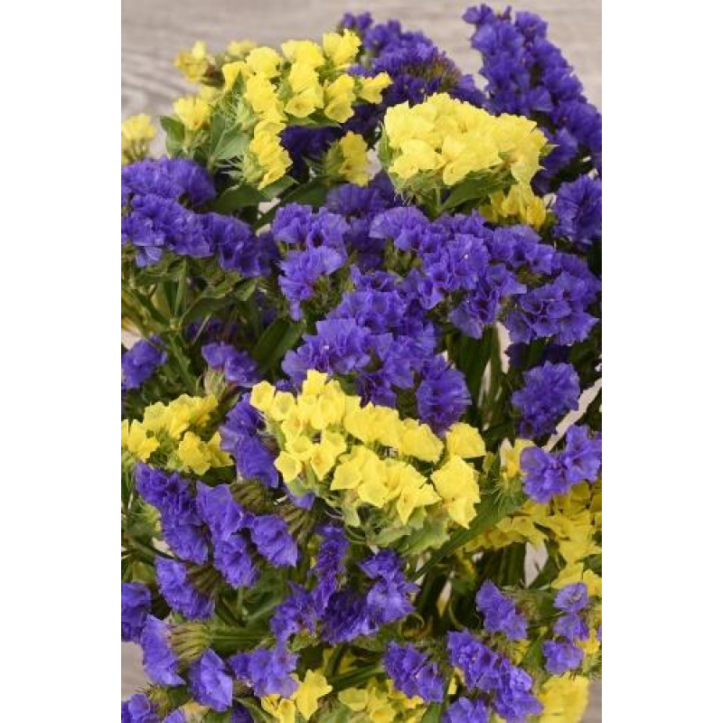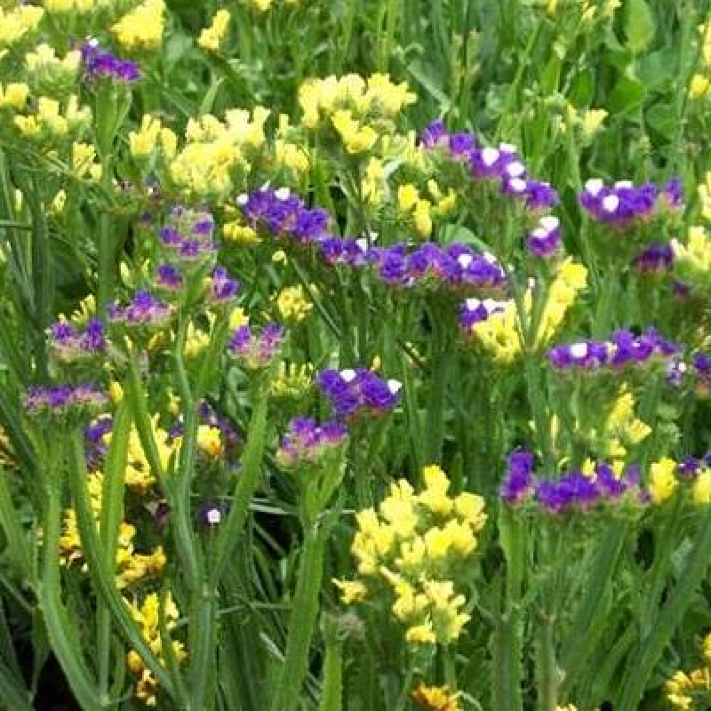 Очень популярное растение, высотой 50-60 см. Мелкие цветки собраны в соцветия, окраску которым придают жёсткие чашечки, окрашенные в жёлтые и синие цвета. Цветёт с июля по октябрь. Используют для миксбордеров, альпийских горок, для срезки и зимних букетов.