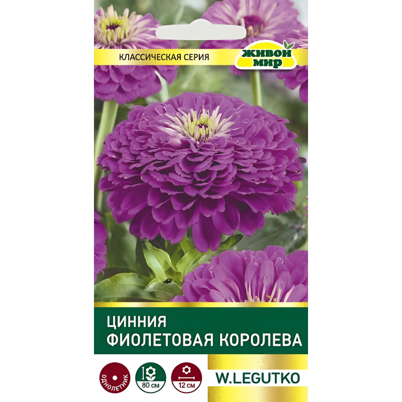 Цинния Фиолетовая королева - великолепный высокорослый сорт с крупными махровыми соцветиями сиренево-фиолетового оттенка. Растения формируют мощные ветвистые кусты высотой 80-90 см, которые станут настоящим украшением любого сада. Соцветия георгиновидной формы достигают впечатляющего диаметра 10-13 см и отличаются исключительной декоративностью. Каждый цветок сохраняет свою красоту до 30 дней, не теряя привлекательности под воздействием дождя и ветра. Сорт характеризуется обильным и продолжительным цветением, создавая яркие акценты в цветниках. Цинния Фиолетовая королева идеально подходит для срезки - цветы долго стоят в воде, сохраняя свежесть и насыщенность окраски. Это надежный и неприхотливый сорт, который порадует даже начинающих садоводов своей устойчивостью и декоративными качествами.