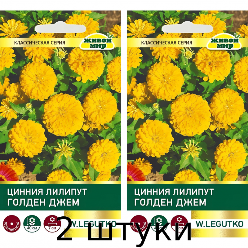 Цинния Лилипут Голден Джем - низкорослый сорт раннецветущих цинний с махровыми ярко-желтыми соцветиями. Кусты прямостоячие, хорошо разветвленные от основания, высотой 40-50 см, с отличной формой. Соцветия достигают диаметра 6-8 см и отличаются высокой устойчивостью к неблагоприятным погодным условиям. Растение цветет очень обильно и продолжительно - с середины июня до первых заморозков. Идеально подходит для украшения клумб, рабаток, балконов и террас. Сорт польской селекции от производителя W. Legutko, известного высоким качеством семян. Упаковка содержит 1 грамм семян, что обеспечивает достаточное количество для создания ярких цветочных композиций. Циннии легко выращиваются, неприхотливы в уходе и прекрасно смотрятся в любом саду или на приусадебном участке.