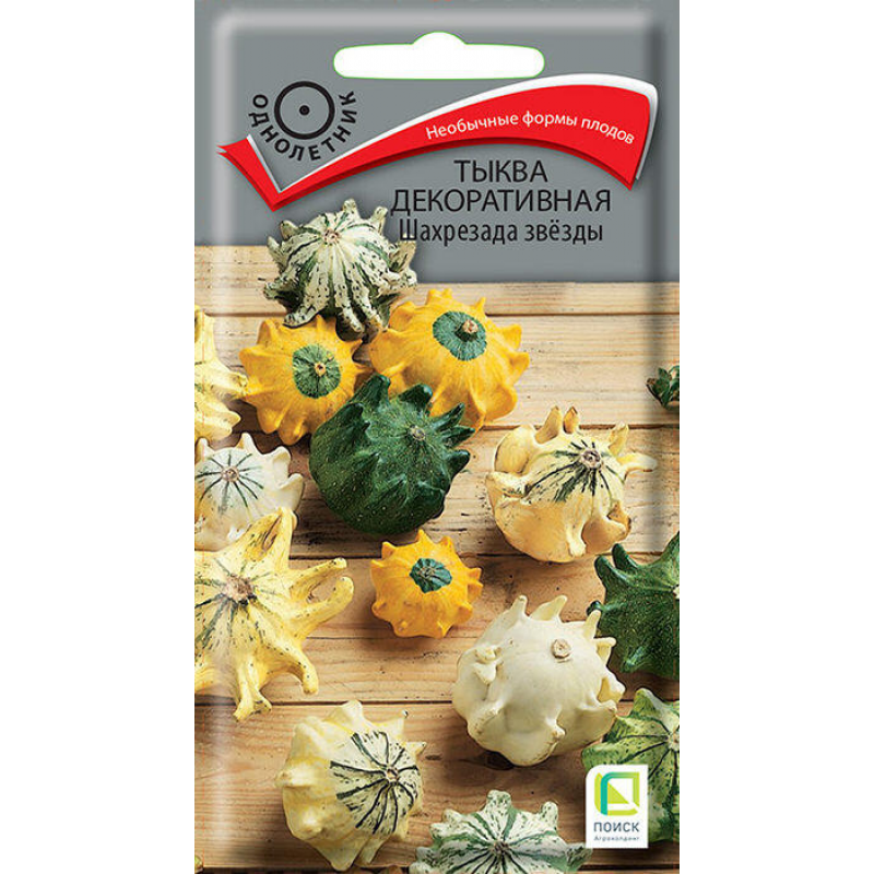 Декоративная тыква Шахрезада звезды - уникальное растение с плодами необычной звездчатой формы и разнообразной расцветки. Эти удивительные плоды станут настоящим украшением вашего сада и интерьера. Растение достигает длины до 4 метров, что позволяет использовать его для вертикального озеленения и создания живых изгородей. Плоды созревают в разнообразных оттенках - от кремовых и желтых до оранжевых и зеленых, каждый в форме изящной звезды. После высыхания плоды сохраняют свою форму и цвет, становясь прекрасным материалом для флористических композиций, осеннего декора и hand-made поделок. Идеально подходит для украшения беседок, арок, заборов и создания уютных зеленых уголков в саду.