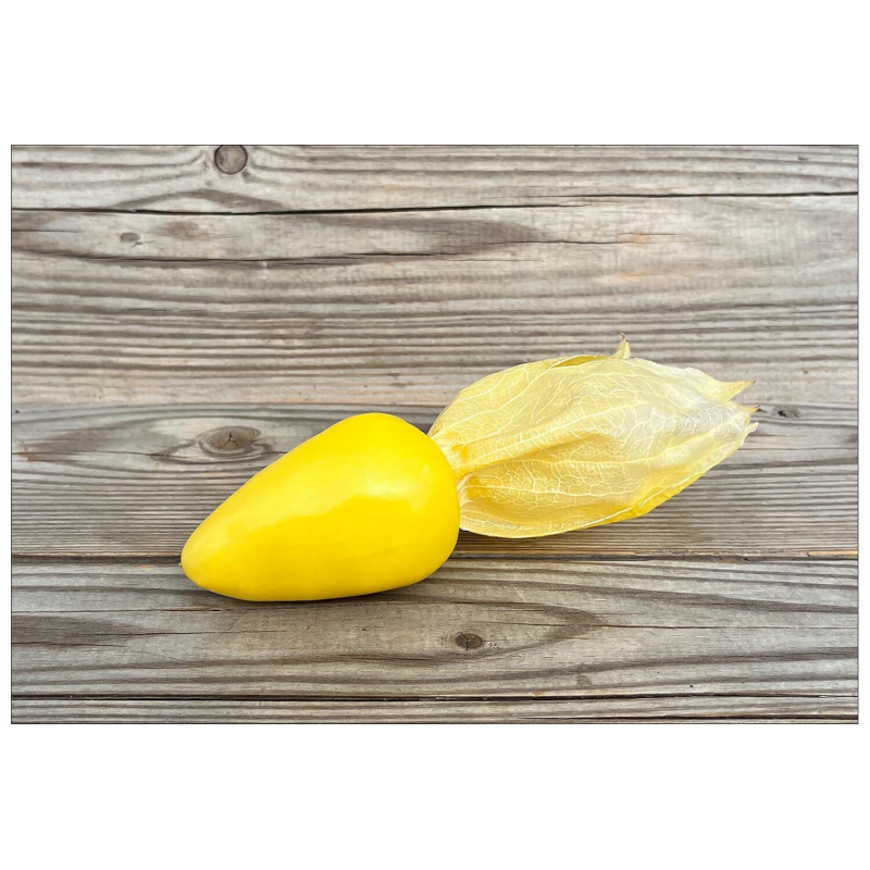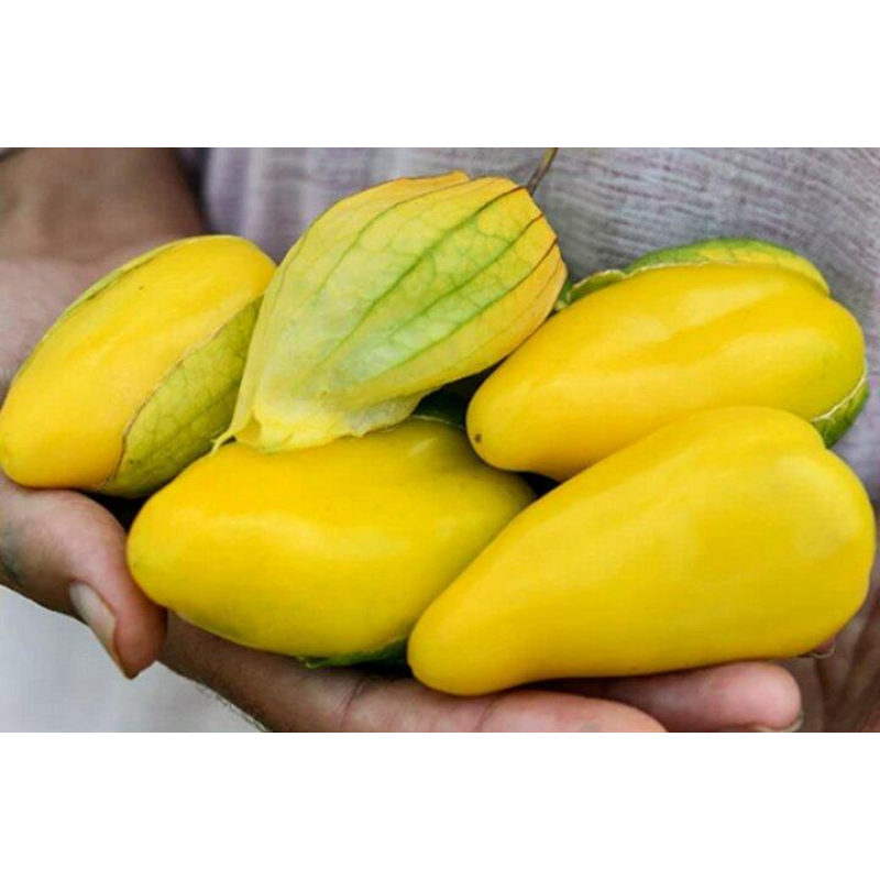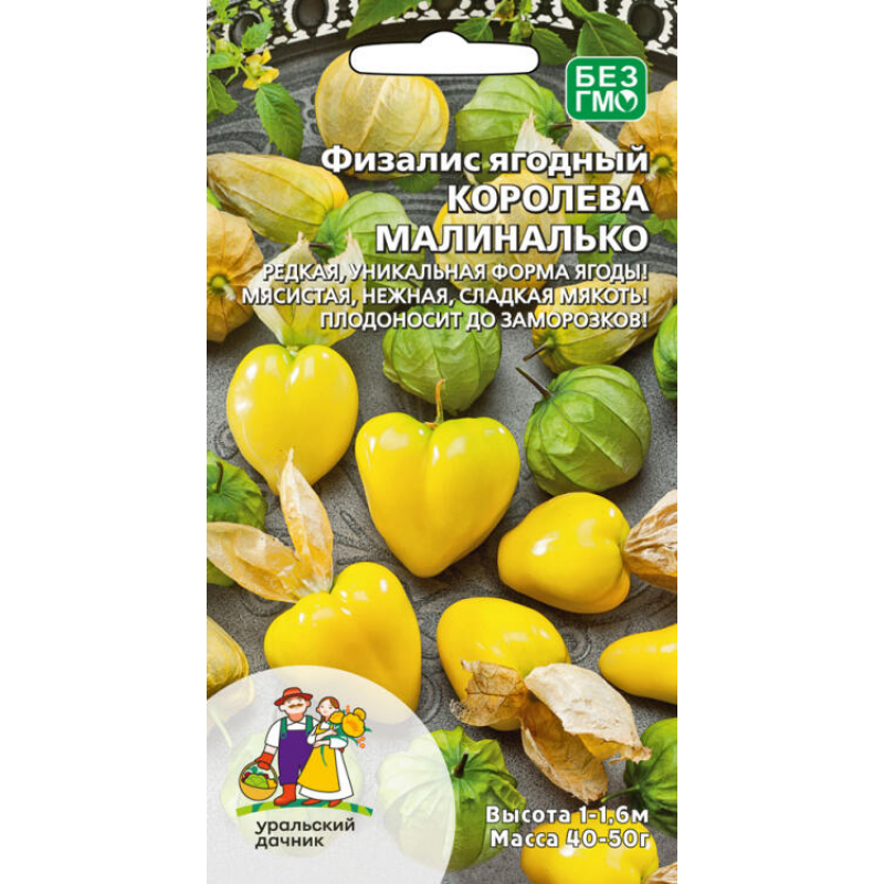 Это неприхотливое растение, с выращиванием которого справится даже неопытный дачник. Относится сорт к высокорослым культурам. Высота взрослого экземпляра варьируется в пределах 100-160 см. Значительно хорошеет кустарник в период цветения и плодоношения. Плоды созревают за 90-100 дней. Период созревания плодов, спрятанных в воздушные фонарики золотисто-бежевого оттенка, приходится на июль-сентябрь. Плодоношение растянутое. Плоды сердцевидной формы, крупные, размером с куриное яйцо, средним весом 50 г. Под тонкой кожицей кроется мясистая и сочная мякоть. Вкус у ягод достаточно сбалансированный – доминирующая сладость дополнена едва заметной кислинкой. Урожайный сорт. В среднем с одного кустарника за сезон удаётся собрать до 3 кг плодов.