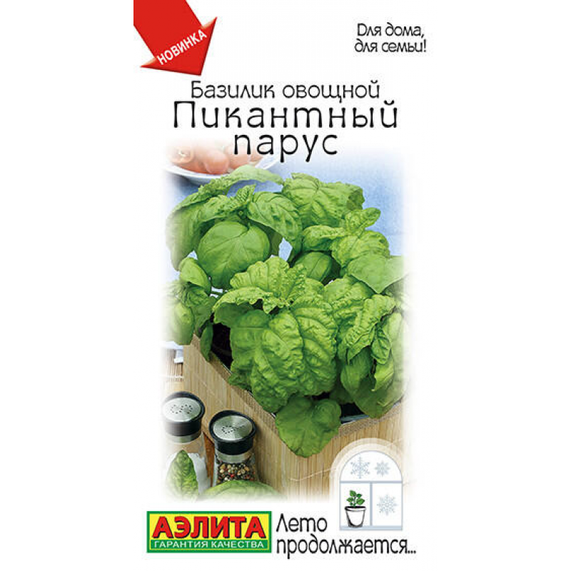 Базилик овощной Пикантный парус - это специально выведенный сорт для домашнего выращивания в осенне-зимний период. Крупнолистный базилик с насыщенным вкусом и ярким ароматом образует в горшечной культуре густой устойчивый кустик, который станет украшением вашего подоконника. Этот сорт идеально подходит для выращивания в домашних условиях, позволяя наслаждаться свежей зеленью круглый год. Растение отличается неприхотливостью и быстрым ростом, что делает его отличным выбором как для опытных садоводов, так и для начинающих любителей домашнего огорода. Регулярный сбор нежных побегов стимулирует рост новых веточек, продлевая период сбора урожая. Базилик Пикантный парус не только обеспечит вас свежей ароматной зеленью, но и станет декоративным элементом кухни или балкона.