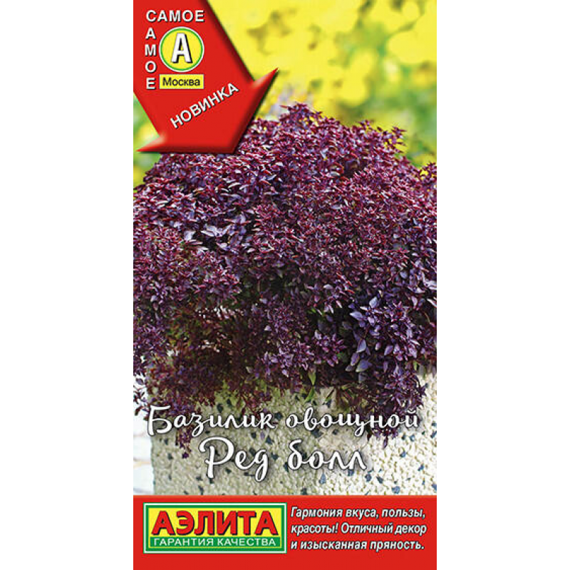 Базилик Ред Болл - уникальный сорт с эффектным внешним видом и насыщенным ароматом. Компактные кустики диаметром 25-35 см отличаются пурпурной окраской листьев, которая при затенении частично переходит в зеленый цвет, создавая изысканный двухцветный эффект. Растение обладает приятным вкусом и сильным ароматом, идеально подходит для выращивания в ограниченном пространстве. Сорт универсален: его можно культивировать в горшках на балконах и подоконниках, в открытом грунте и теплицах. Базилик Ред Болл используется как в свежем, так и в сушеном виде для приготовления различных блюд. Небольшие размеры растения делают его отличным выбором для домашнего огорода и декоративного оформления.