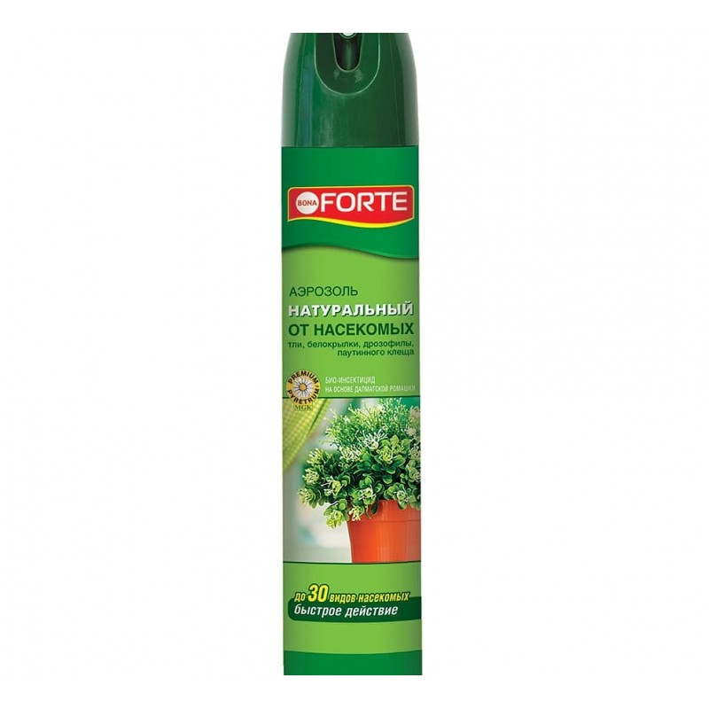 Аэрозоль BONA FORTE — эффективное средство для моментального уничтожения летающих насекомых-вредителей на комнатных растениях и декоративных культурах открытого грунта. Произведено на основе очищенного концентрата натурального пиретрума от американской компании MGK, мирового лидера с вековым опытом в производстве пиретринов. Средство обеспечивает быстрое парализующее действие («нокдаун»-эффект), не вызывает привыкания у насекомых и безопасно в применении: действующие вещества разлагаются под солнечным светом, позволяя употреблять обработанные овощи, фрукты и ягоды уже через 2–3 часа. Экономичный расход и натуральный состав делают его надежным выбором для защиты растений.