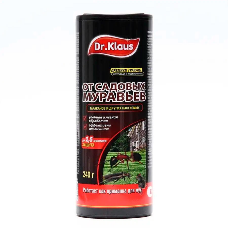 Гранулы Dr.Klaus — эффективное средство для борьбы с муравьями, тараканами, мухами и другими насекомыми в жилых помещениях, хозяйственных постройках и на садовых участках. Препарат действует как приманка, привлекая вредителей и уничтожая не только взрослых особей, но и их личинки. После поедания гранул гибель насекомых наступает в течение 1–2 суток. Средство обеспечивает длительную защиту до 75 дней (около 2,5 месяцев), что позволяет надолго избавиться от проблемы. Гранулы удобны в применении: их можно рассыпать в труднодоступных местах, трещинах, щелях и вдоль плинтусов как внутри помещений, так и на открытых участках. Продукт отличается простотой использования и высокой результативностью.