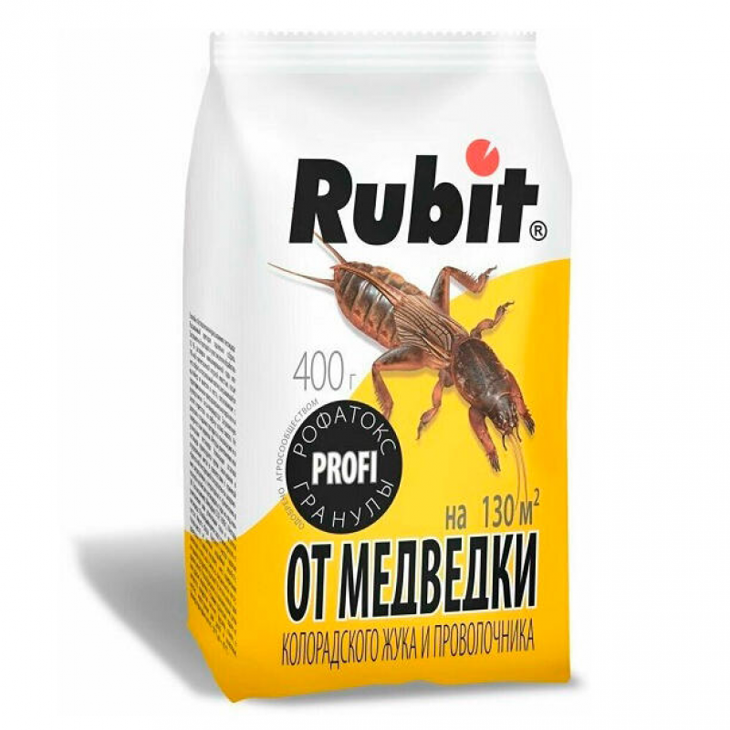 Гранулы Rubit Рофатокс — это эффективная готовая приманка для защиты овощных, цветочных культур, земляники и картофеля от опасных вредителей: медведки, колорадского жука и проволочника. Препарат подходит для использования как в открытом, так и в защищённом грунте. Он обеспечивает быструю гибель насекомых — уже в течение 3 часов после поедания приманки, при этом не оказывая фитотоксичного воздействия на сами растения. Гранулы легко вносятся в почву на рекомендованные глубины, что позволяет надёжно защитить корневую систему и клубни. Средство выпускается в удобной форме гранул весом 400 г, что делает его практичным для применения на садовых участках.