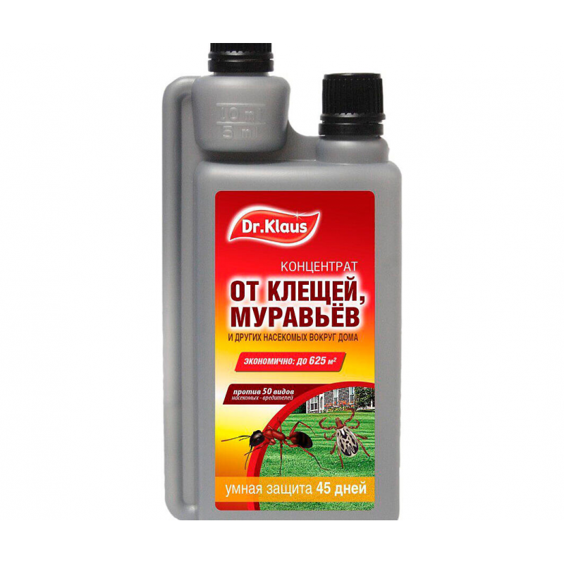 Концентрат Dr.Klaus — эффективное средство для защиты садового участка от иксодовых клещей, муравьев и других насекомых-вредителей. Формула на основе водорастворимого концентрата обеспечивает быстрое уничтожение насекомых и создает барьерную защиту до 1,5 месяцев, предотвращая проникновение вредителей в дом. Удобная мерная емкость позволяет точно рассчитать необходимое количество средства для обработки. Продукт производится в России компанией АО «Русинхим», отличается простотой применения и надежным результатом.