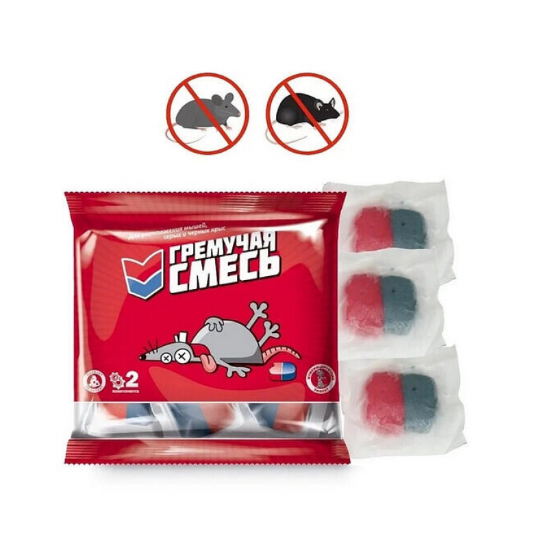 Тесто-Брикет 'Гремучая смесь' — эффективный родентицид для борьбы с крысами и мышами в помещениях. Содержит действующее вещество бродифакум (0,005%), которое обеспечивает надежное уничтожение грызунов. Брикеты выполнены в удобной форме теста, привлекательной для вредителей, что повышает вероятность поедания. Продукт предназначен для использования в жилых, складских, производственных и других закрытых пространствах. Вес упаковки — 200 г. Произведено в России компанией Нингбо ИнжоуБестуин Коммодиги Ко. Лтд. Перед применением рекомендуется ознакомиться с инструкцией и соблюдать меры безопасности.