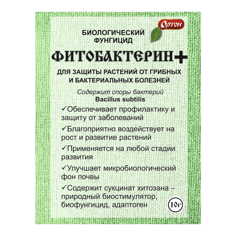 Биопрепарат Фитобактерин+ от Ортон — это комплексное средство для защиты и оздоровления растений. Он обеспечивает эффективную профилактику и борьбу с широким спектром грибных и бактериальных заболеваний, одновременно улучшая состояние почвы. В состав входят полезные бактерии Bacillus subtilis и природный биостимулятор хитозан, которые усиливают естественную защиту растений, стимулируют их рост и развитие, а также повышают эффективность усвоения удобрений. Препарат подходит для применения на всех стадиях вегетации и способствует увеличению срока хранения собранного урожая. Это экологичное решение для поддержания здоровья садовых культур.