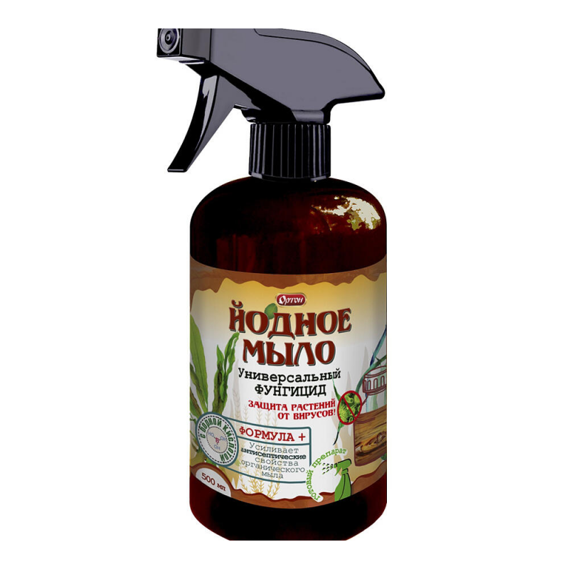 Мыло йодное спрей Ортон — это универсальное дезинфицирующее и антисептическое средство для обработки садовых инструментов, горшков, ящиков, контейнеров, помещений, теплиц, погребов и растений. Йод в составе действует как «скорая помощь», эффективно предупреждая появление патогенной микрофлоры, такой как пятнистости, ржавчина, сажистый гриб, фитофтороз, парша и черная ножка. Средство помогает дольше сохранить урожай, защищая овощи и фрукты от плодовых гнилей. Обладает бактерицидным, фунгицидным и вирулицидным действием, усиленным борной кислотой, при этом безопасно для человека и окружающей среды. Форма выпуска — водорастворимый концентрат объемом 500 мл.