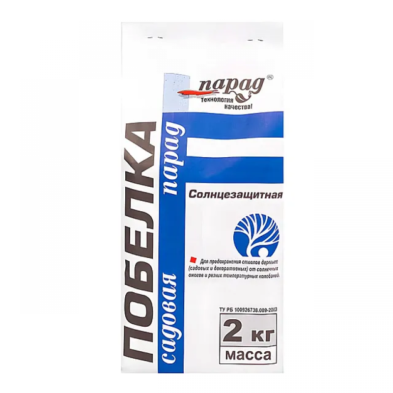 Садовая побелка Парад Солнцезащитная — это специальный состав для защиты плодовых и декоративных деревьев от негативных внешних воздействий. Основное назначение — предотвращение солнечных ожогов коры в зимне-весенний период, когда яркое солнце нагревает тёмную кору днём, а ночные заморозки вызывают её растрескивание. Также побелка защищает от резких перепадов температур, морозобоин и вредителей. В состав входят мел, известь и натрий КМЦ, что обеспечивает хорошую адгезию, долговечность покрытия и безопасность для растений. Продукт произведён в Беларуси компанией ЗАО «ПАРАД». Упаковка 2 кг удобна для обработки нескольких деревьев. Перед покупкой уточняйте актуальные характеристики и наличие.