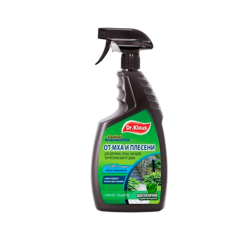 Спрей Dr.Klaus Control — готовый к применению препарат для эффективного удаления и профилактики появления мха, плесневых грибов, лишайников и водорослей на различных поверхностях. Подходит для обработки дерева, бетона, асфальта, плитки, фасадов из сайдинга, садовых фигур, кровельных материалов, а также стекла, керамики, пластмассы, металла и природного камня. Обеспечивает 100% очищение, уничтожает споровые растения и защищает от их повторного появления. Достаточно одной обработки для достижения видимого результата. Продукт отличается универсальностью и простотой использования, что делает его идеальным решением для поддержания чистоты дорожек, крыш, фасадов и придомовой территории.
