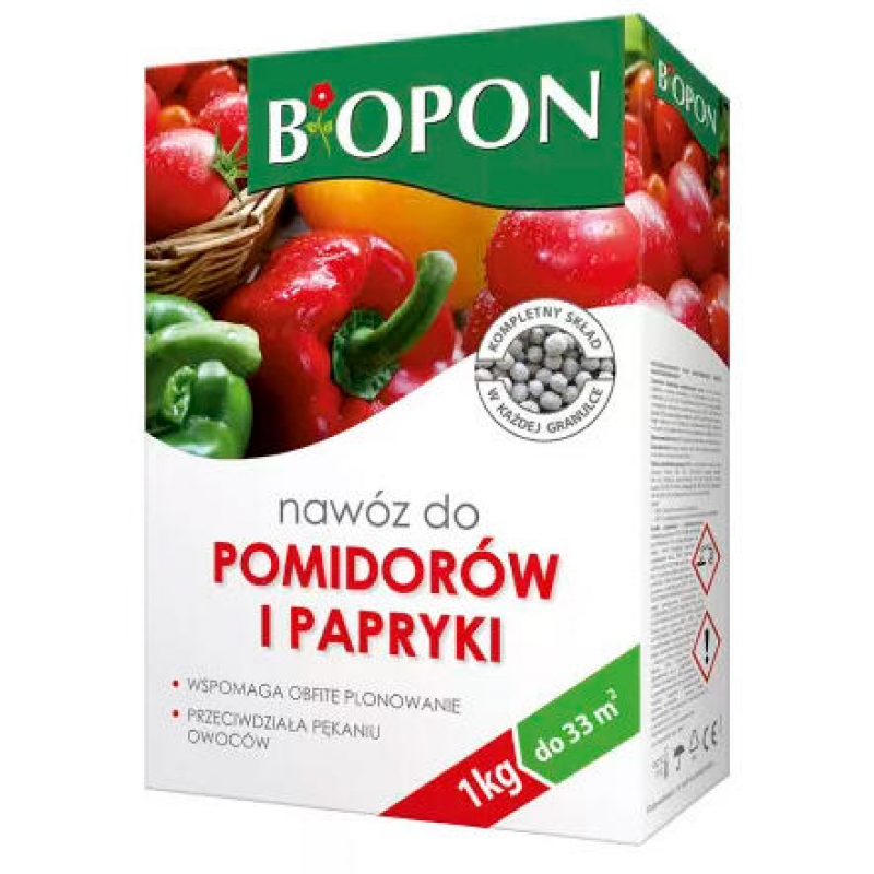 Удобрение БИОПОН — это комплексное минеральное удобрение, специально разработанное для томатов и перцев. Оно содержит полный набор питательных элементов, необходимых растениям на протяжении всего периода вегетации. Сбалансированный состав NPK 7-5-7,5, обогащенный серой, магнием и железом, обеспечивает правильное укоренение рассады, поддерживает активное цветение и способствует получению обильного урожая. Высокое содержание калия помогает предотвратить растрескивание плодов, улучшая их качество и лежкость. Удобрение в форме гранул удобно в применении и подходит для всех пасленовых культур. Произведено в Польше, вес упаковки — 1 кг.