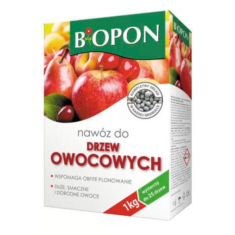 Удобрение БИОПОН — это комплексное минеральное удобрение, специально разработанное для плодовых деревьев и ягодных кустарников. Оно подходит как для семечковых культур (яблони, груши), так и для косточковых (слива, черешня, вишня, персик, абрикос). Сбалансированный состав NPK 9.3-5-8.5, обогащённый серой и магнием, обеспечивает растения всеми необходимыми питательными веществами в легкоусвояемой форме. Удобрение способствует обильному завязыванию плодов, их правильному росту и созреванию. Благодаря пониженному содержанию хлоридов и особой форме азота плоды не накапливают нитраты, вырастают крупными, с красивой окраской и отличным вкусом, а также дольше хранятся. Регулярное применение гарантирует здоровое развитие и высокую урожайность вашего сада. Форма выпуска — гранулы, удобные для внесения. Произведено в Польве, вес упаковки — 1 кг.