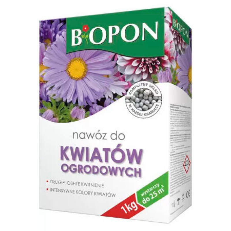 Удобрение БИОПОН для цветов — это многокомпонентное минеральное средство, специально разработанное для всех видов цветущих растений. Сбалансированный состав с повышенным содержанием калия (NPK 3.5-10-15) обеспечивает комплексное питание, укрепляет корневую систему и повышает устойчивость растений к неблагоприятным условиям, включая вымерзание. Регулярное применение способствует насыщенной зеленой окраске листьев, стимулирует обильное и продолжительное цветение, улучшая общее состояние декоративных культур. Удобрение в форме гранул легко дозируется и подходит для использования в саду, на клумбах и для комнатных растений. Произведено в Польве под брендом BIOPON, упаковка 1 кг.