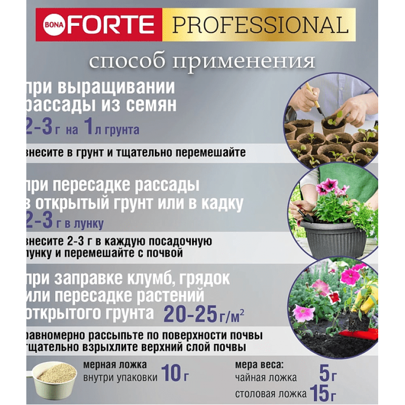 - Свойства:укрепляет корневую систему, увеличивает продолжительность цветения, повышает иммунитет, помогает перенести неблагоприятные внешние факторы, обеспечивает растения питательными веществами