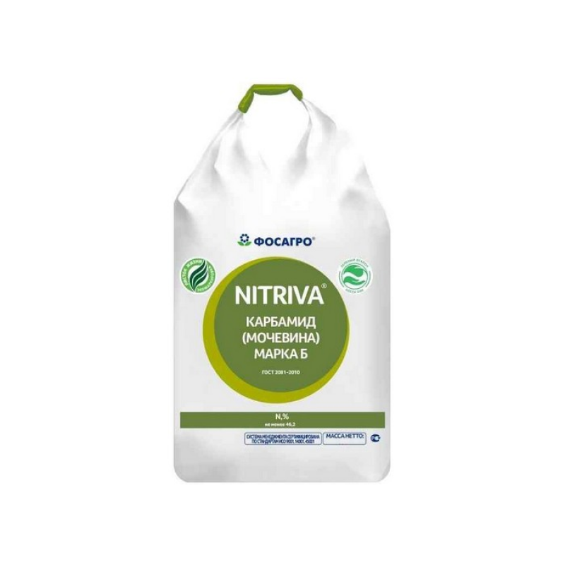 Карбамид (мочевина) марка Б — наиболее концентрированное приллированное азотное удобрение для обеспечения сельскохозяйственных растений азотом на протяжении всего периода роста и развития. Оптимально снабжает растения всеми тремя формами доступного азота: амидным, а также аммонийным и нитратным (после соответствующих превращений в почве). Подходит для почв с рН менее 6,5. В результате его трансформации в почве идет сначала подщелачивание, а затем подкисление почвенного раствора. Самое экологичное, мягкое для растений азотное удобрение с широким диапазоном применения: от осеннего внесения в почву для повышения качества продукции до применения в качестве антистрессанта. Единственная форма азотного удобрения для риса.