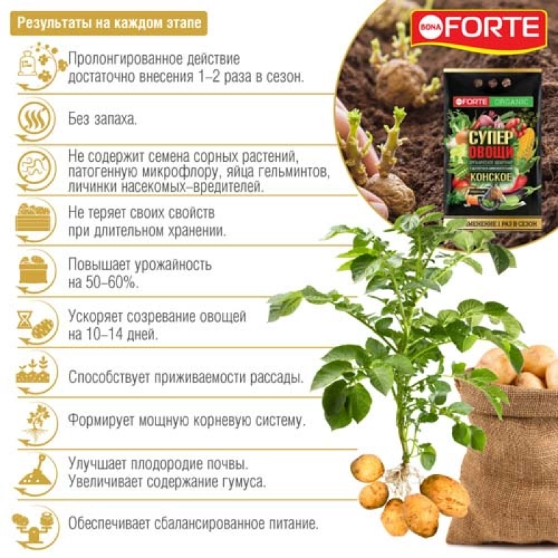 Органический состав; Сбалансированный комплекс NPK и кремния; Богатый набор аминокислот; Восстановление и повышение плодородия почвы; Укрепление корневой системы и приживаемости рассады; Ускорение созревания урожая; Удобная гранулированная форма; Производство в России