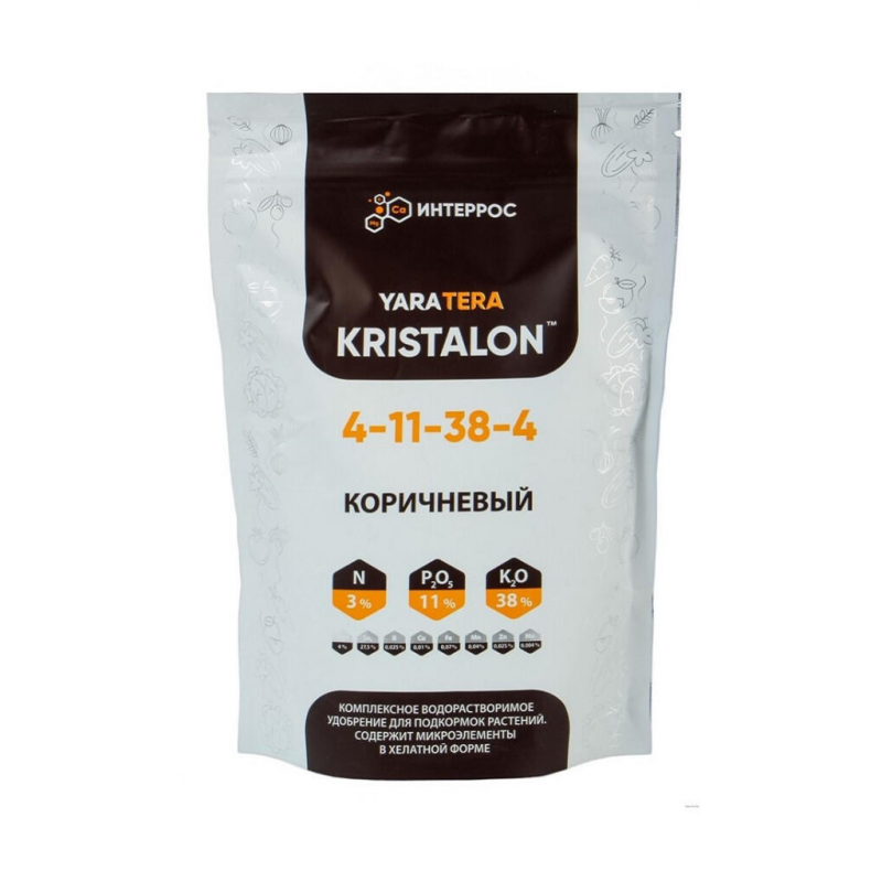 Кристалон Коричневый - специализированное минеральное удобрение с уникальным соотношением NPK 3:11:38, разработанное для культур с повышенной потребностью в калии. Продукт норвежского бренда Yara отличается низким содержанием азота и высоким содержанием калия, что делает его идеальным для применения во второй половине вегетационного периода. Удобрение содержит сбалансированный комплекс микроэлементов: магний, серу, бор, медь, железо, марганец, цинк и молибден в хелатной форме, что обеспечивает легкую усвояемость растениями. Подходит для всех типов почв, но наиболее эффективно проявляет себя на дерново-подзолистых и песчаных грунтах с дефицитом калия. Отлично растворяется в воде, что позволяет использовать его для корневых и внекорневых подкормок. Применяется для овощных культур в весенне-летний период, способствуя улучшению качественных характеристик урожая.