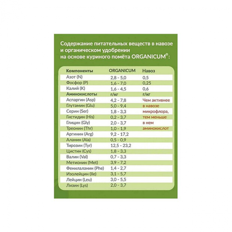 ОРГАНИКУМ не только питает растения, но и способствует восстановлению и поддержанию плодородия почвы. Комплекс аминокислот, включая аспаргин, глутамин, гистидин и другие, усиливает корневое питание и стимулирует развитие культур даже в условиях неблагоприятной среды.