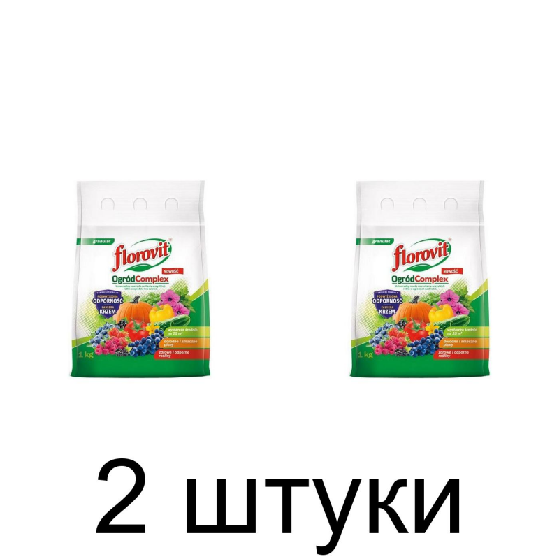 Удобрение универсальное FLOROVIT Сад Complex в гранулах (1кг) — эффективное минеральное удобрение для садовых растений, обеспечивающее комплексное питание и защиту от болезней. Идеально подходит для всех видов садовых растений. Основные преимущества: - Состав: 12,0% (N) азот полный, 4,3% (N) азот аммония, 7,7% (N) азот в правах, 11,0% (P2O5) фосфор растворимый в нейтральном растворе цитрата аммония и воде, 7,1% (P2O5) фосфор растворимый в воде, 18,0% (K2O) окись калия растворимая в воде, 3,0% (MgO) оксид магния, 16,0% (SO3) триоксид серы, 0,03% (B) бор, 0,50% (Fe) железо, 0,12% (Mn) марганец, 0,040% (Zn) цинк. - Стимулирует рост и питание растений. - Защищает от болезней. Производитель: Grupa INCO, Польша. Форма выпуска: гранулы. Вес: 1.031 кг.