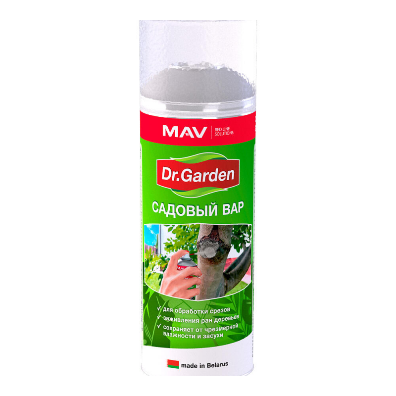 Садовый вар MAV Dr.Garden в форме аэрозоля создаёт прочную эластичную плёнку на основе природной канифоли, которая надёжно защищает спилы и повреждения деревьев. Он предотвращает высыхание, переувлажнение, растрескивание, а также блокирует проникновение инфекций, вредителей и насекомых. Средство устойчиво к солнцу, морозу и осадкам, способствуя быстрому заживлению ран. Легко наносится, заполняет поры, не плавится и не крошится после высыхания. Подходит для использования в саду и оранжереях (с проветриванием). Объём: 520 мл.