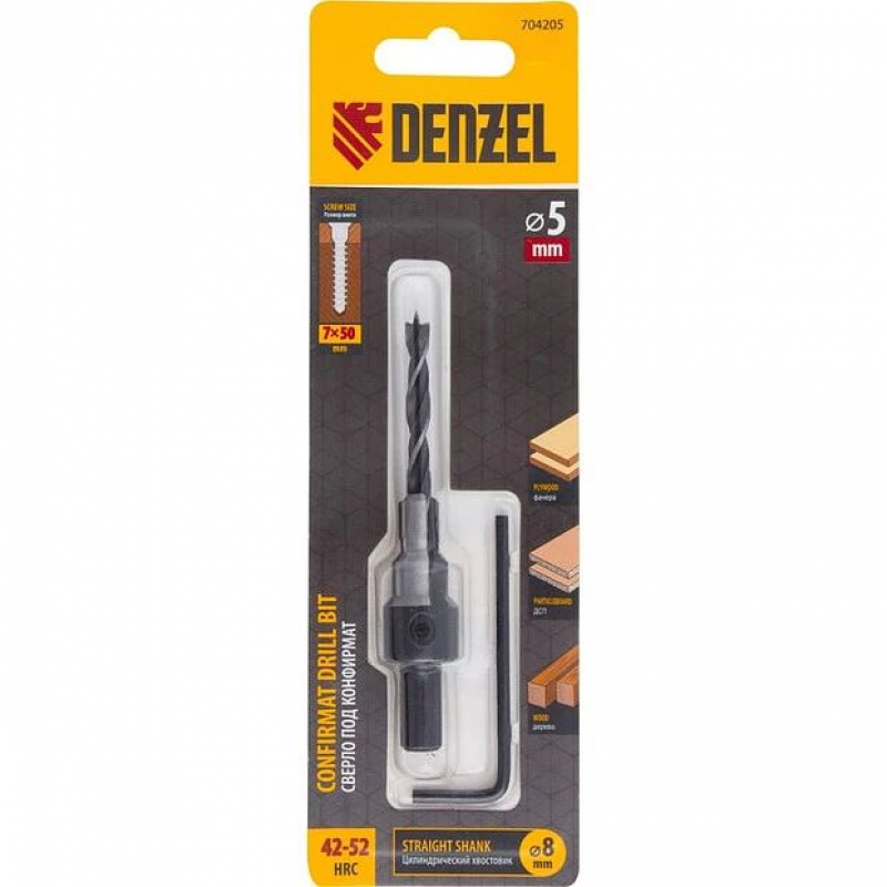 Сверла-зенкеры под конфирмат Denzel предназначены для сверления отверстий под мебельную стяжку, евровинты в изделиях из дерева. Применяются при работе с электродрелями и сверлильными станками. Изготовлены из инструментальной стали - надежной и долговечной. Опимально подобранные ступени и заточка сверла обеспечивают сверление чистых и ровных отверстий под конфирмат.