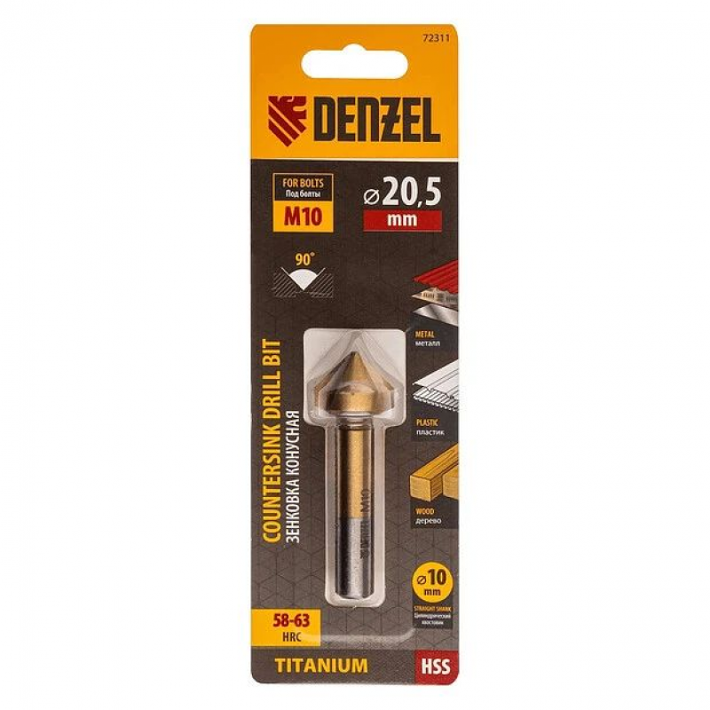 Зенкер конусный DENZEL для крепежа под М10 диаметром 20.5 мм и длиной 64 мм идеально подходит для работы с металлом. Сверло изготовлено из HSS, что обеспечивает высокую прочность и стойкость к износу. Цилиндрический хвостовик обеспечивает надежное крепление в инструментах, что делает его подходящим для профессионального использования и различных проектов по металлообработке.