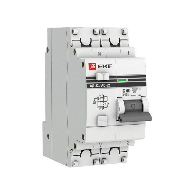 Дифавтомат EKF Proxima АД-32 1П+Н 40А/30мА – надежное устройство для защиты однофазных электрических сетей от коротких замыканий и утечек тока. Этот автоматический выключатель с дифференциальной защитой, имеющий один полюс и нейтраль (1P+N), рассчитан на номинальный ток 40 А и ток утечки 30 мА, что делает его оптимальным для использования в цепях с высокой нагрузкой, таких как системы кондиционирования, водонагреватели и мощная бытовая техника.