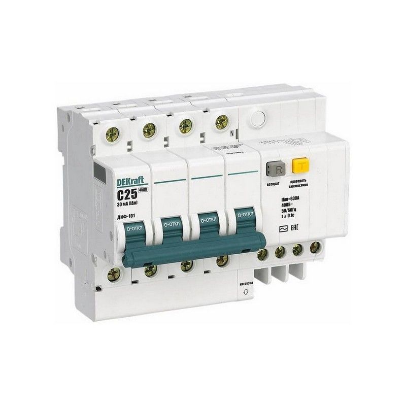 Дифавтомат DEKraft ДИФ-101 3П+Н 40А/30мА – надежное устройство для защиты трехфазных электрических сетей от коротких замыканий и утечек тока. Этот дифференциальный автоматический выключатель, имеющий три полюса и нейтраль (3P+N), рассчитан на номинальный ток 40 А и ток утечки 30 мА, что делает его идеальным для защиты мощных цепей в промышленных и коммерческих установках, где необходим повышенный уровень безопасности.