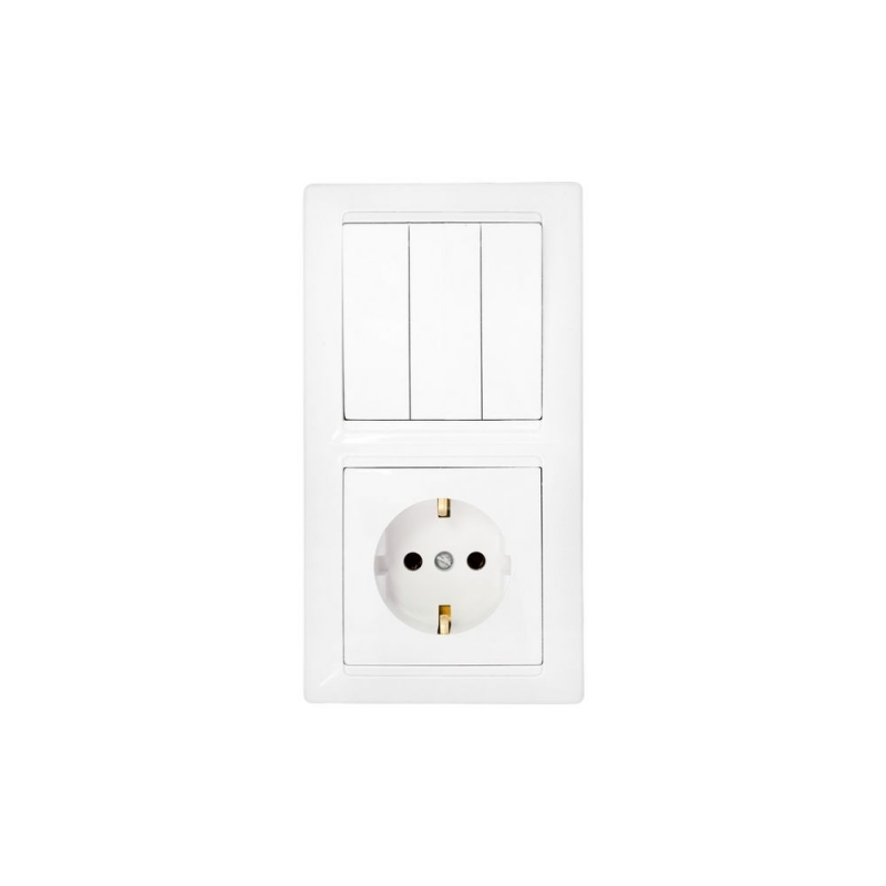 Этот блок сочетает в себе три клавиши для управления разными источниками света и одну розетку с заземлением, что делает его отличным выбором для помещений с ограниченным пространством.
